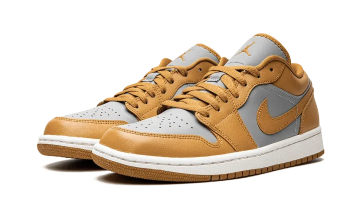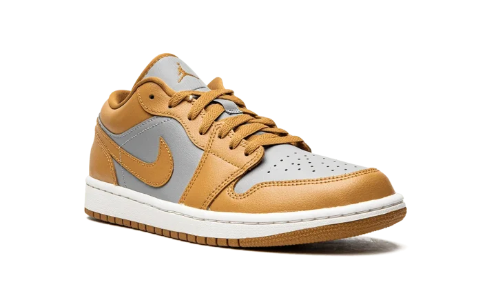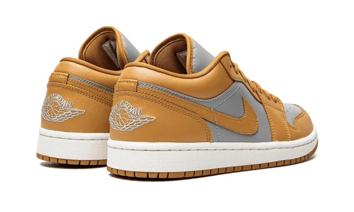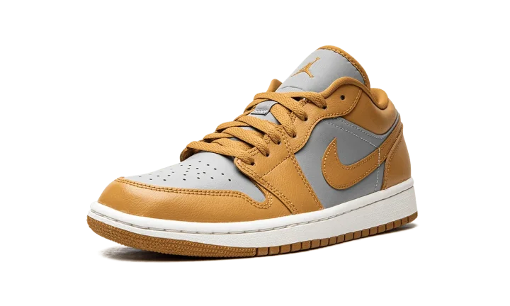 The Women's Air Jordan 1 Low "Chutney" is a women's version of the popular low-top shoe that features neutral tones on its design. The "Chutney" excels in wearability as it features a grey leather base with Chutney-colored leather overlay panels and Swoosh branding on the sides. A grey "Wings" logo is embroidered on the heel, and a Chutney Jumpman appears on the tongue. The shoe's cream rubber midsole is complemented with a Chutney outsole. Release date: October 31, 2022