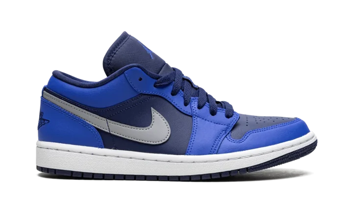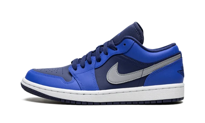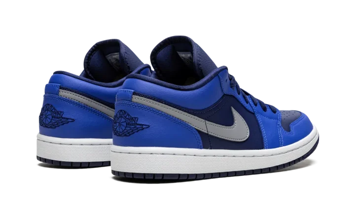 The Women's Air Jordan 1 Low "Game Royal/Blue Void" is a women's-exclusive colorway of the retro basketball shoe with different shades of blue accenting. Another popular release from Jordan Brand, the Women's Jordan 1 Low "Game Royal/Blue Void" features the toe, forefoot, eyelets, collar, and heel in Game Royal leather. The base of the upper is featured in a shade of blue called Blue Void. Elsewhere, a Stealth (grey) leather Swoosh is found on either side of the shoe. A navy "Wings" logo is embroidered onto the heel. The navy nylon tongue features a classic Jumpman logo in a slightly lighter shade of blue.