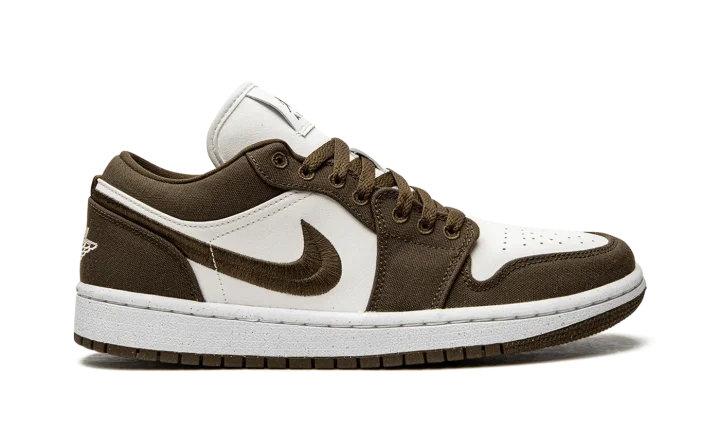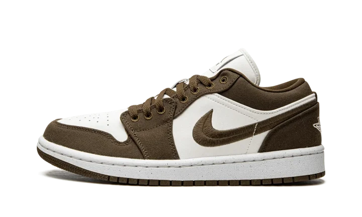 The Women's Air Jordan 1 Low "Light Olive" is a women's-exclusive release of Michael Jordan's first signature shoe in an earth tone colorway. Designed to be worn casually on a daily basis, the "Light Olive" features a cream-colored leather base with olive-brown canvas overlays and Swoosh branding. A white "Wings" logo is embroidered on the heel. Additional branding includes a Jumpman and "Air" logos on the tongue. The white midsole and brown rubber outsole complete the look. Release date: September 2, 2022
