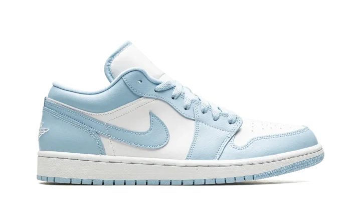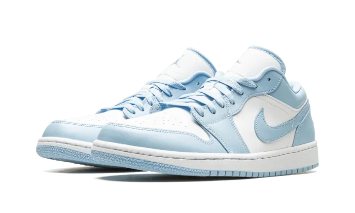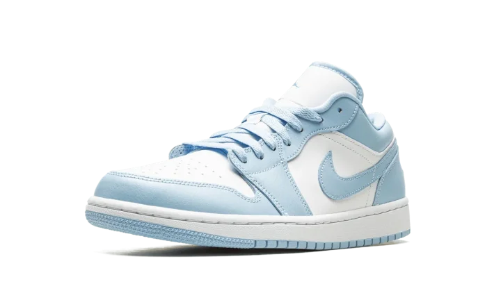 The Women's Air Jordan 1 Low "Ice Blue" is a women's-exclusive colorway of the vintage basketball shoe that shows love to the Jordan 1's original "UNC" style. While in no way associated with the University of North Carolina, the "Ice Blue" nonetheless honors Michael Jordan's alma mater and college basketball team by featuring its signature white-and-blue team uniform colors on its design. The upper is complete with a white leather base with Ice Blue leather overlays and Swoosh branding. A white "Wings" logo is found on the heel. On the tongue, an Ice Blue Jumpman gives the shoe a timeless look. Underfoot, a white midsole and blue rubber outsole round out the design.