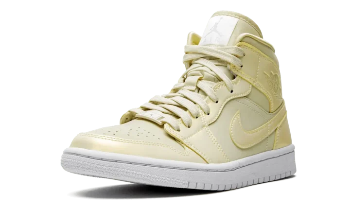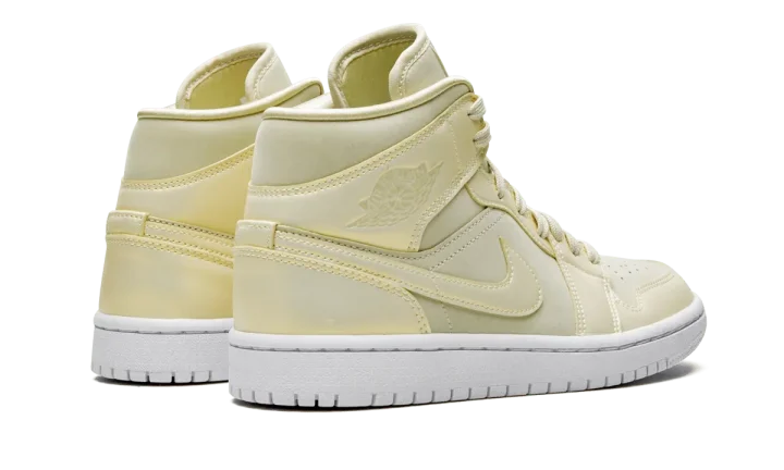 The Women's Air Jordan 1 Mid SE "Goose Feather Yellow/Lemon Yellow" is an elegant mid-top version of Michael Jordan's first signature shoe with Nike. The "Goose Feather Yellow/Lemon Yellow" colorway is an everyday option, featuring glossy pale yellow leather panels contrasted by a tonal nubuck base that appears on the mid-panel and perforated toe. A tonal leather Swoosh covers the mid-panel with a Wings logo located on the ankle collar. The rest of the upper is outfitted with tonal details like matching laces and a Jumpman lace lock on the throat of the shoe.