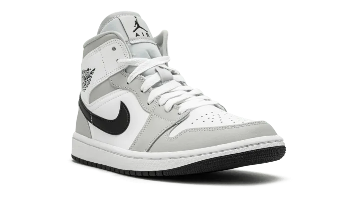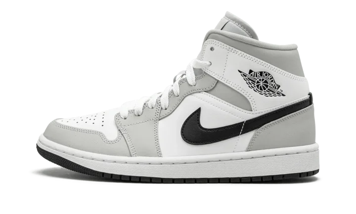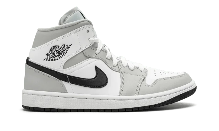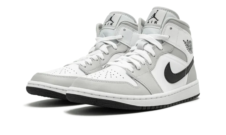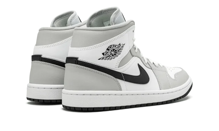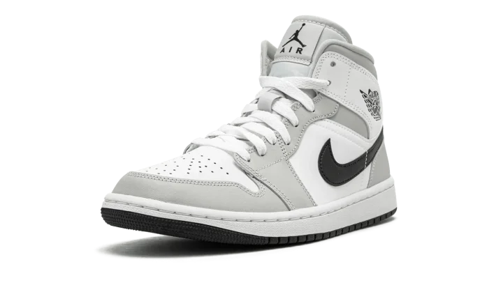 The Women's Air Jordan 1 Mid "Grey Fog" is a women's colorway of Michael Jordan's first signature shoe in its mid-top style that excels in versatility. The "Grey Fog" brings another appealing look to the Air Jordan 1 Mid, one of the most popular shoes in Jordan Brand's collection. Designed to be dressed up or down, the "Grey Fog" features white leather on the perforated toe, mid-panel, and collar. Contrasting Grey Fog leather appears on the overlays on the toe cap, forefoot, eyelets, collar, and heel. The Swoosh is found in black leather and a black Wings logo appears on the collar. Additional branding, including a black Jumpman logo and "Air" detailing, can be found on the white nylon tongue tag.
