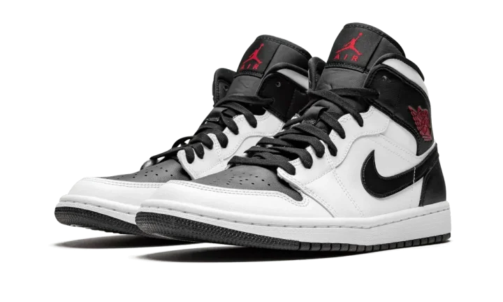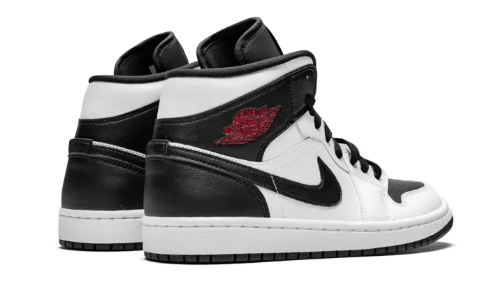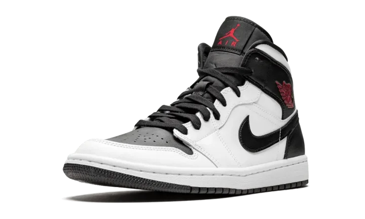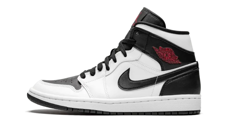 The Air Jordan 1 Mid women's shoe remixes the famous Chicago Bulls colors with a heavy dose of white. The mid-top Jordan 1's entire side panels are dressed in crisp white leather, while black accents most of the rear, lacing system, and Nike Swoosh. The only red is on the Jumpman on the tongue and the Air Jordan Wings logo imprint on the side. The Air Jordan 1 Mid is grounded with a clean white and black sole.