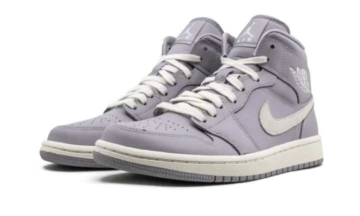 The Air Jordan 1 Mid is back with a simple women's colorway. With a color scheme named "Light Bone," the pair is a fresh take on the original with a subdued palette and heritage style. It features a cool grey upper with ivory accents on the Nike Swoosh, Jordan Jumpman and wings logos, and midsole. A grey outsole rounds out the classic lifestyle sneaker.