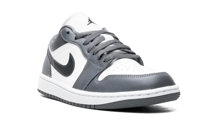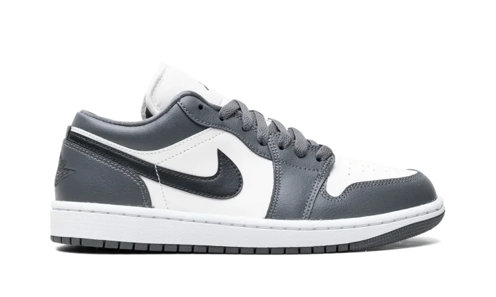 The Women's Air Jordan 1 Low "Dark Grey" is a women's-exclusive colorway of the popular sneaker that features grey accents. The Jordan 1 Low "Dark Grey" has a versatile design, and is complete with a white leather upper and Dark Grey leather overlays. A Dark Grey leather Swoosh logo can be seen on the sides. "Wings" branding is embroidered on the heel, and a Jumpman appears on the tongue. Underfoot, a white midsole and grey outsole round out the design. Release date: December 10, 2023