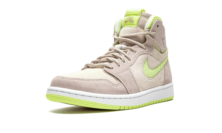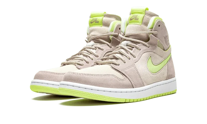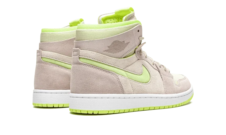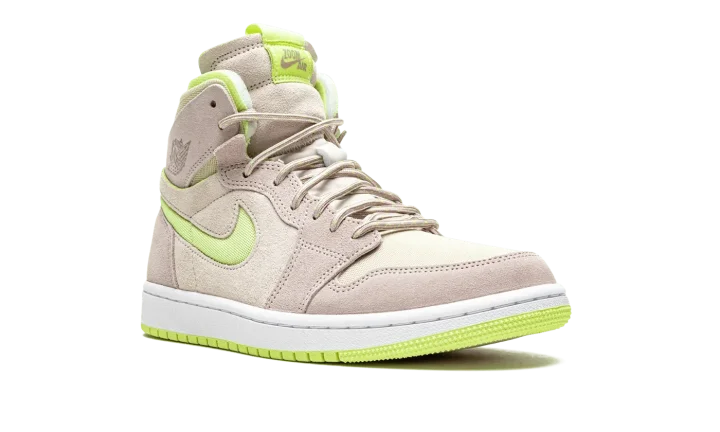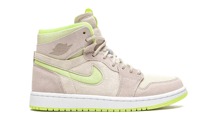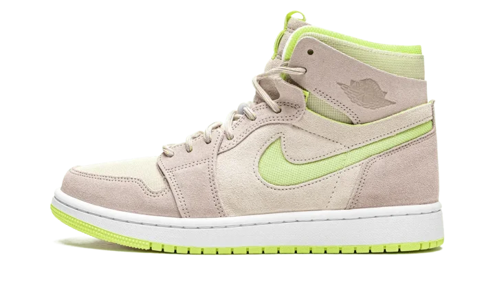 Beige suede Air Jordan 1 Zoom Air CMFT sneakers from JORDAN featuring signature Air Jordan Wings logo, signature Swoosh logo detail, contrasting panel detail, round toe, front lace-up fastening, logo patch at the tongue, ankle-length, branded insole and rubber sole. These styles are supplied by a premium sneaker marketplace. Stocking only the most sought-after footwear, they source and curate some of the most hard to find sneakers from around the world..