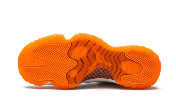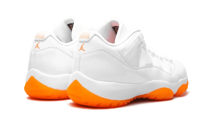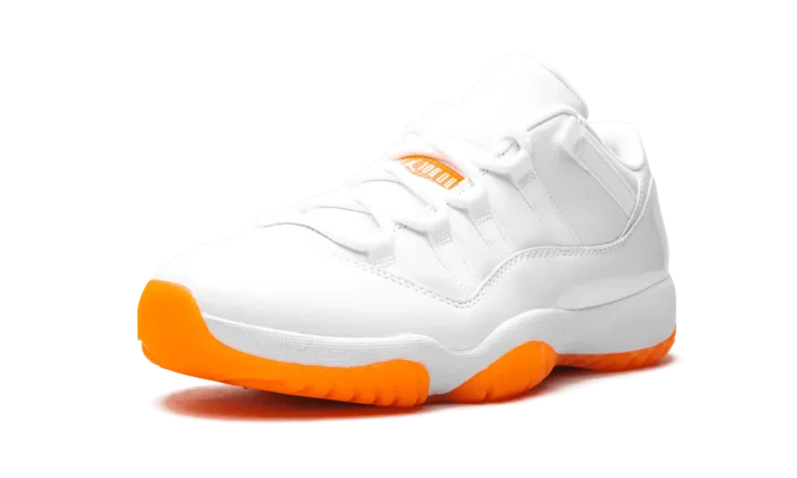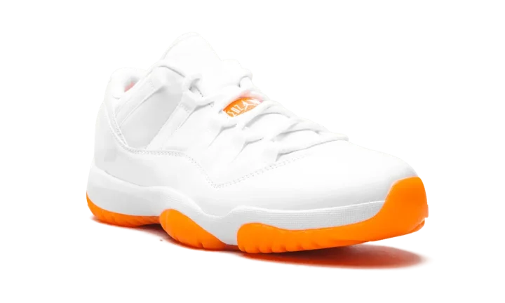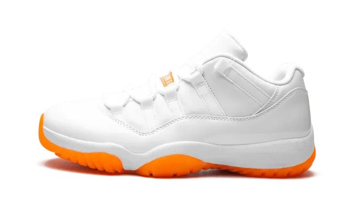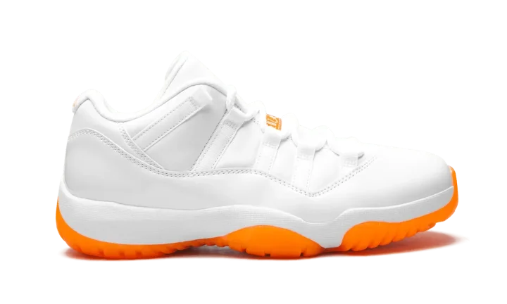 The Women's Air Jordan 11 Low "Bright Citrus" is a women's exclusive colorway of Michael Jordan's eleventh signature shoe that was originally released in 2001. One of the first non-original Air Jordan 11 colorways, the "Bright Citrus," or just "Citrus" as it was referred to upon its debut, was part of Jordan Brand's "Retro+" collection that reimagined core classic Jordan styles as "lifestyle" shoes in new materials and colorways designed to be worn away from the basketball court. The minimalist look of the "Bright Citrus" is highlighted by the design's white patent leather mudguard and white tumbled leather upper. An orange Jumpman is embroidered on the back of the shoe beneath the orange "23" detailing on the heel. An orange nylon Jordan patch can be found in the middle of the design of the white leather tongue. The semi-translucent outsole is finished off in a Bright Citrus hue per the original styling of the women's-exclusive "Citrus" from 2001. What's more, unlike the 2015 release, the May 2021 version of the "Bright Citrus" features the Jordan 11's original carbon fiber support plate on the outsole. Release date: May 6, 2021.