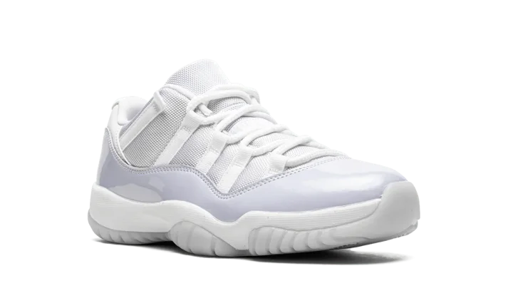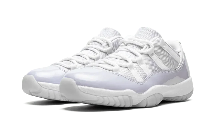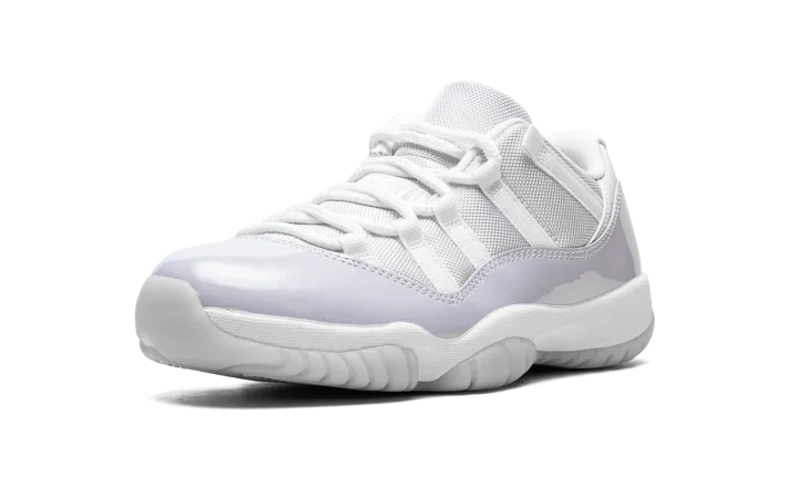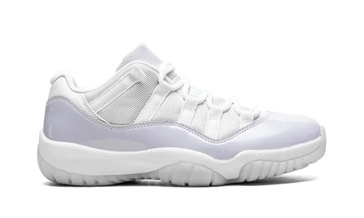 The Women's Air Jordan 11 Low "Pure Violet" is a women's-exclusive release of the classic basketball shoe in a colorway primed for spring. Its two-tone, white and violet color block replicates the two-color design of the Jordan 11 Low's collection of initial releases from 2001. The upper is constructed with a white ballistic mesh material. A Pure Violet patent leather mudguard contrasts the neutral appearance of the shoe's upper. White rope laces are incorporated into the quick-lace design setup. The white foam midsole houses a full-length Air cushioning unit. Underfoot, the semi-translucent outsole is fortified by a carbon fiber shank plate. Release date: April 28, 2022