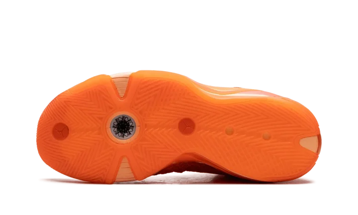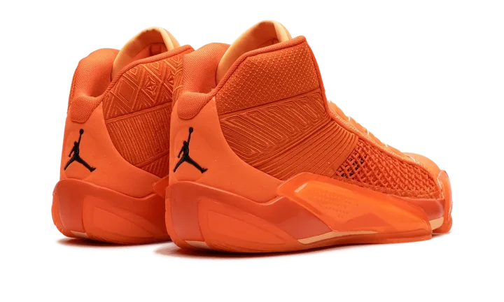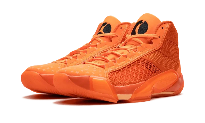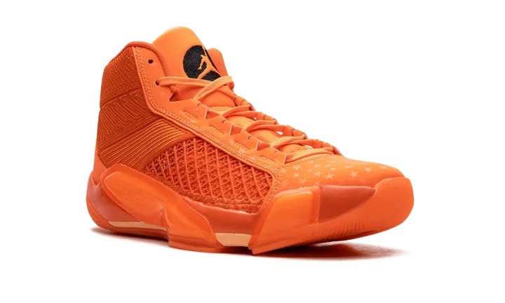 The Air Jordan 38 "Center Star" is a colorway of the performance basketball sneaker that honors Jordan Brand's WNBA athletes. Also inspired by the 2023 WNBA All-Star Game in Las Vegas, the "Center Star' Jordan 38 features a mostly monochromatic Brilliant Orange appearance with an intricate knit material on the side up to the collar. A star motif inspired by the WNBA All-Star Game is seen on the toe, insole, and heel counter. A Jumpman logo is seen on the tongue of the left shoe while a WNBA logo appears on the tongue of the right shoe. A Jumpman is located on the heel of both shoes.