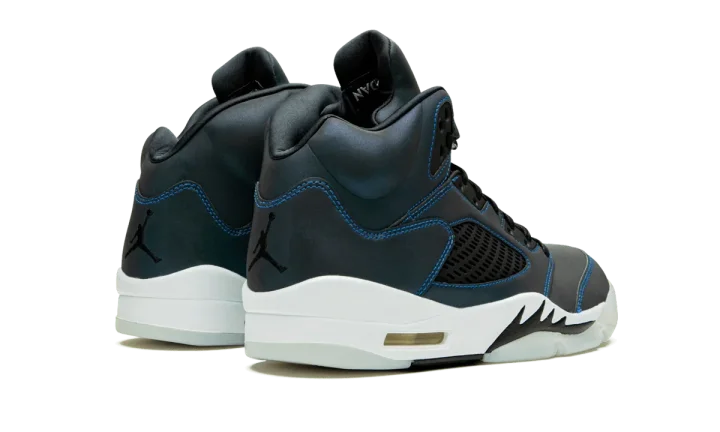 The Women's Air Jordan 5 "Oil Grey" is a women's-only colorway that celebrates the thirtieth anniversary of Michael Jordan's legendary fifth signature shoe. Emphasizing its newfound place in the lifestyle footwear space, Jordan Brand opts for an iridescent finish for the silhouette's upper that changes color when hit with light. Traditional Jordan 5 styling remains intact as black netting covers the mid-panel and a black lace toggle appears over the laces. The unmistakable "shark teeth" pattern appears on the midsole and embroidered Jumpman branding covers the heel. Release date: January 30, 2020