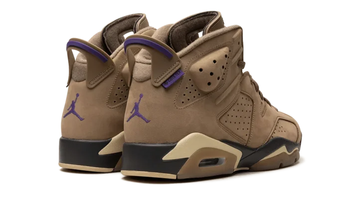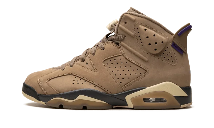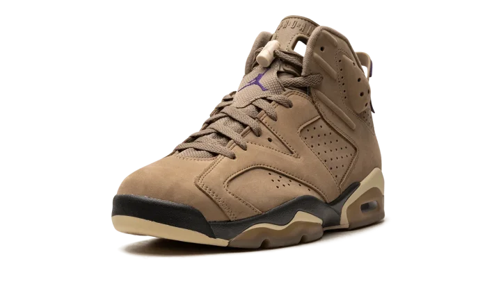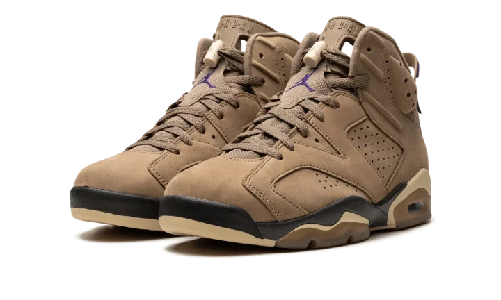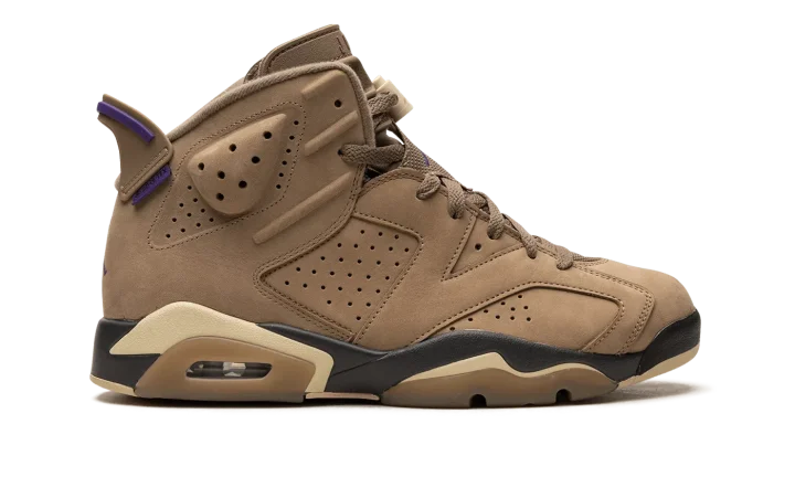 The Women's Air Jordan 6 Gore-Tex "Brown Kelp" is a women's-exclusive colorway of Michael Jordan's sixth signature shoe with a water-resistant construction. Designed to withstand inclement weather conditions, the Jordan 6 Gore-Tex in "Brown Kelp" features a Brown Kelp upper with a Gore-Tex membrane that is resistant to the elements. A Court Purple Jumpman is embroidered on the tongue. A "Gore-Tex" logo is seen on the lateral side of the heel. Team Gold accenting lands on the lace lock and on the Jumpman that's stitched onto the heel. Underfoot, the shoe is complete with a purple and tan midsole. Release date: November 29, 2023
