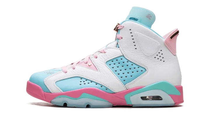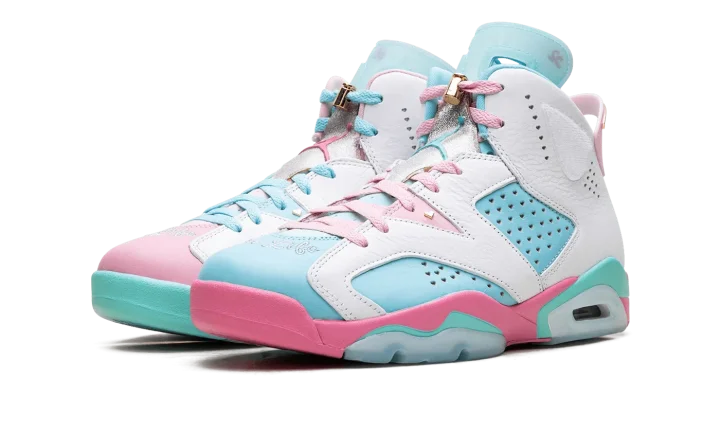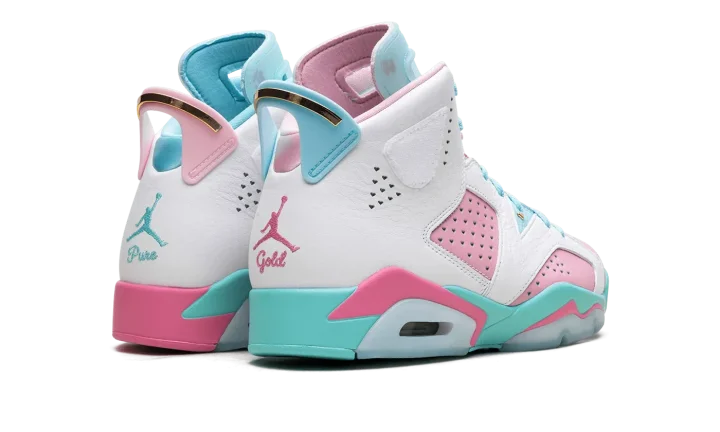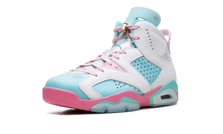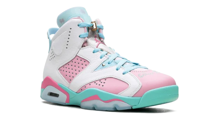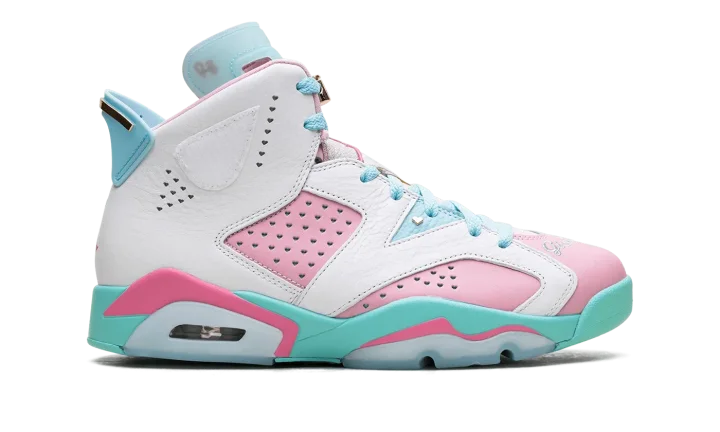 Celebrate heart and creativity with the Air Jordan 6 WMNS "Doernbecher." Designed by young patient-designer Jillian Beagley, this special edition Air Jordan 6 features bold, asymmetrical color-blocking in turquoise, pink, and white leather, reflecting her love for mismatched shoes. Personal touches include "Give Life" embroidered on the toe, heart-shaped perforations, and metallic gold accents. This meaningful release raises funds for OHSU Doernbecher Children's Hospital, blending iconic style with a powerful story of resilience.