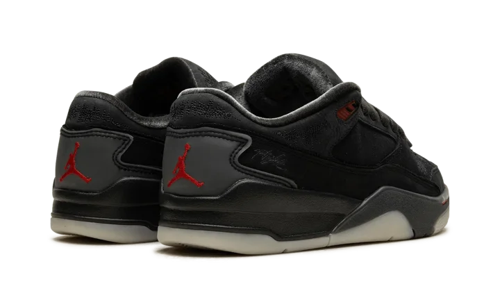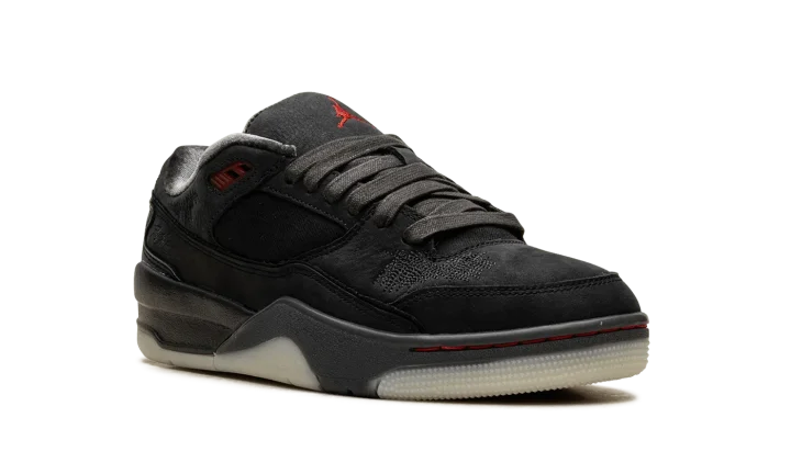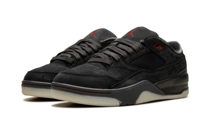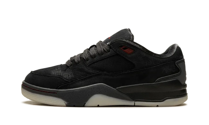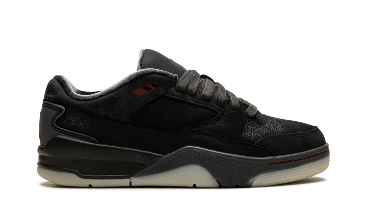 Celebrate the bold collaboration with the Jordan Flight Court SP "Who Decides War," a sneaker fusing basketball heritage with high-end distressed streetwear. This shoe features a premium blend of black nubuck, canvas, and leather on a retro-inspired low-top silhouette. Varsity Red accents and bespoke stitching add the brand's signature aesthetic, while "The World Is Your Court" is embroidered on the tongue interior, delivering an inspiring message with every stylish stride.
