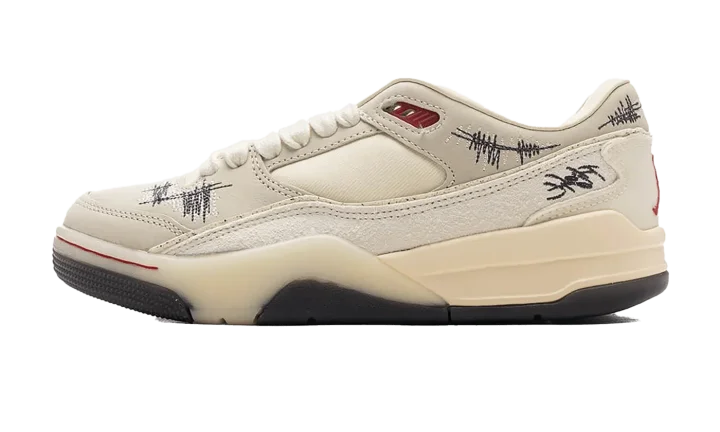 Make a bold statement with the Jordan Flight Court SP Wmns 'Who Decides War' sneaker, a compelling collaboration with New York's Téla D'Amore. This women's model is a fusion of Jordan heritage and skate-inspired streetwear, built with a premium Black upper and bold Varsity Red accents. It features signature darning and distressed details by Who Decides War, and a hidden message: "The World Is Your Court" is embroidered inside the tongue. This powerful, comfortable shoe is perfect for embracing unapologetic individuality.