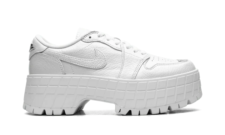 Elevate your stature with the Air Jordan 1 Brooklyn Low WMNS "White Metallic Silver." This women's-exclusive sneaker fuses the iconic AJ1 DNA with a bold platform boot silhouette. It features a premium White full-grain leather upper accented by sleek Metallic Silver details. The chunky foam midsole, exaggerated rubber lugs, and visible Nike Air cushioning provide height, supreme comfort, and durable traction, grounding your look in hoops heritage with a contemporary, elevated edge.