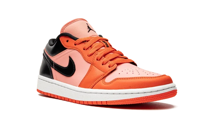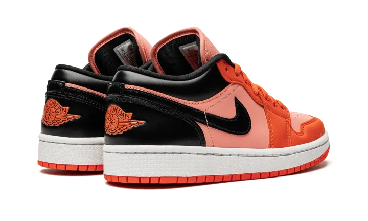 The Women's Air Jordan 1 Low "Black/Orange" brings a Halloween vibe to the popular low-top shoe. A women's-exclusive release, the "Black/Orange" garners attention with its orange and black appearance. Specifically, orange leather is found on the toe cap, forefoot, and eyelets. A lighter shade of orange leather appears on the base. Contrasting black leather graces the Swoosh on the sides, the collar, and the heel. Orange "Wings" branding is embroidered on the back of the shoe.
