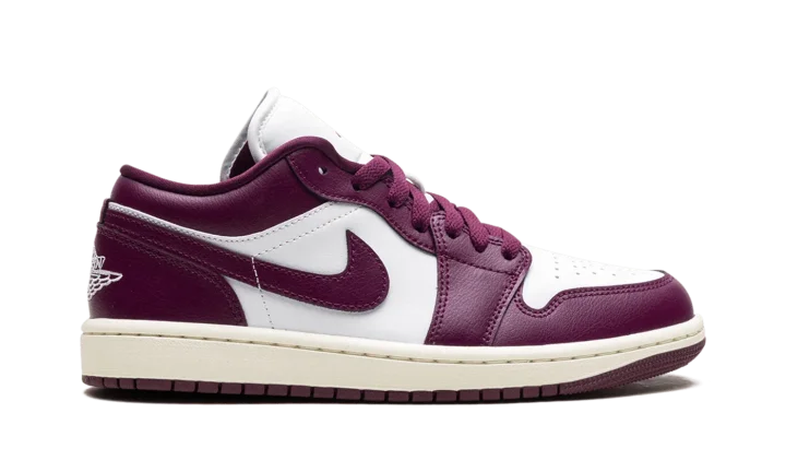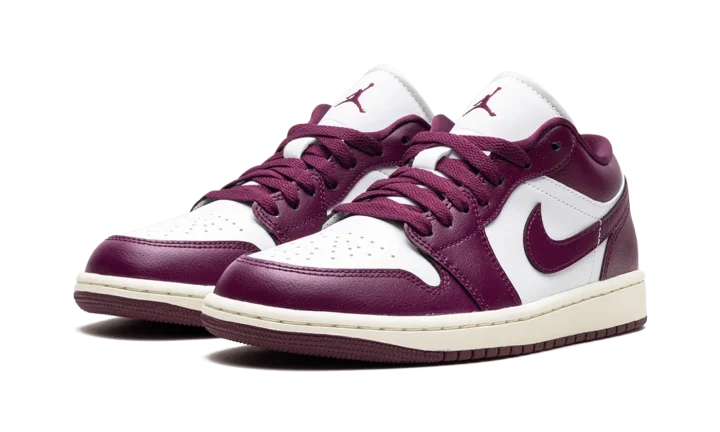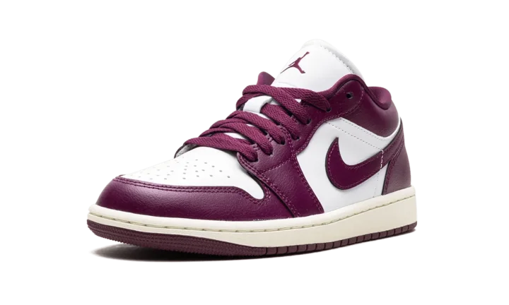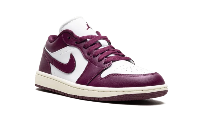 A stylish take on a classic, the Jordan 1 Low WMNS "Bordeaux" features a clean, two-tone colorway perfect for any rotation. The sneaker boasts a rich Bordeaux leather upper contrasted by bright white leather on the toe box, mid-panel, and tongue. Bordeaux accents continue on the nylon tongue, laces, and rubber outsole, all resting on a comfortable white rubber midsole. A matching leather Swoosh and the Jordan Wings logo embroidered in Bordeaux on the heel complete this sought-after women's exclusive low-top.