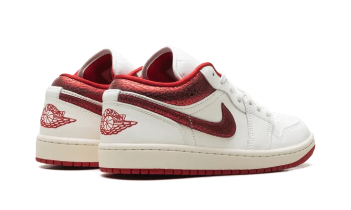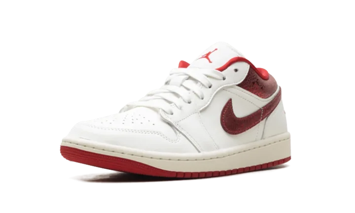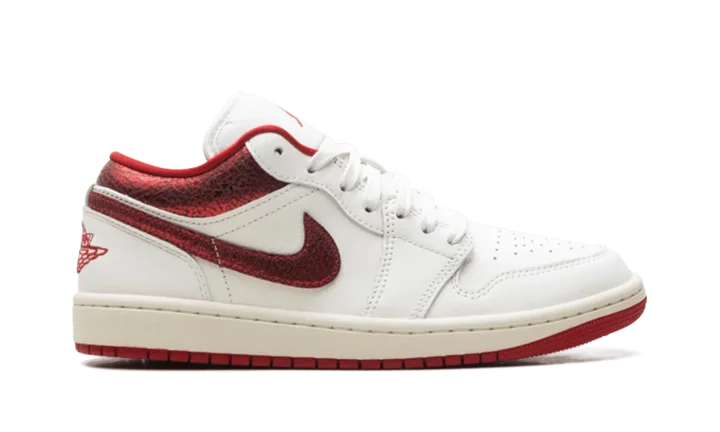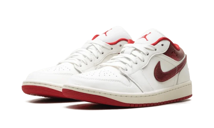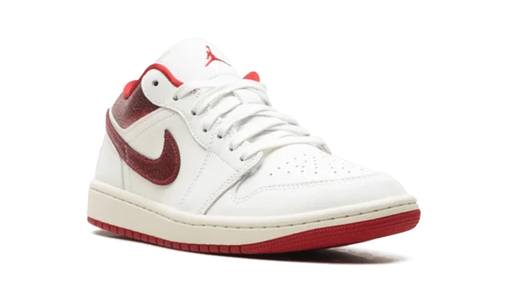 Ignite your style with the Air Jordan 1 Low WMNS "Ruby." This women's-exclusive sneaker celebrates the classic low-top silhouette with a luxurious finish, drawing inspiration from the brilliance of its namesake gemstone. It features a crisp Sail leather base with Varsity Red cracked metallic leather overlays that shimmer like a ruby. An embroidered Wings logo and encapsulated Air-Sole unit deliver a comfortable fit and a truly stunning, legendary aesthetic.