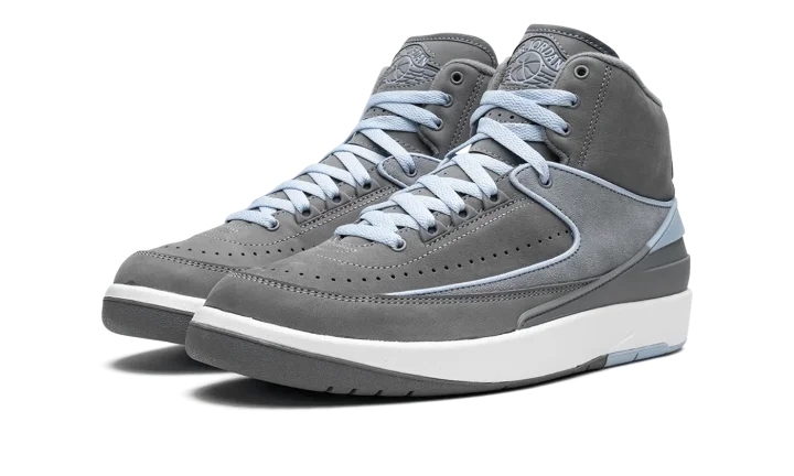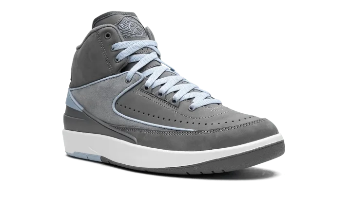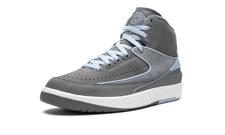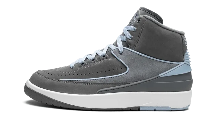 The Women's Air Jordan 2 "Cool Grey" is a women's-exclusive colorway of the retro basketball shoe with a mostly grey appearance. This clean look for the classic silhouette features a Cool Grey suede construction with a slightly lighter shade of grey on the mid-panel overlay. Ice Blue piping along the panels on the upper add color to the shoe's muted look. Additional Ice Blue accenting can be found on the heel counter, on the "Jordan" branding on the heel, and on the "Wings" logo on the tongue. A white foam midsole and grey and blue outsole complete the look. Release date: May 4, 2023