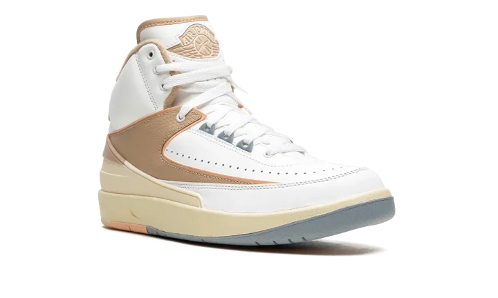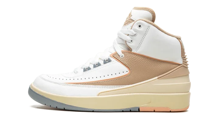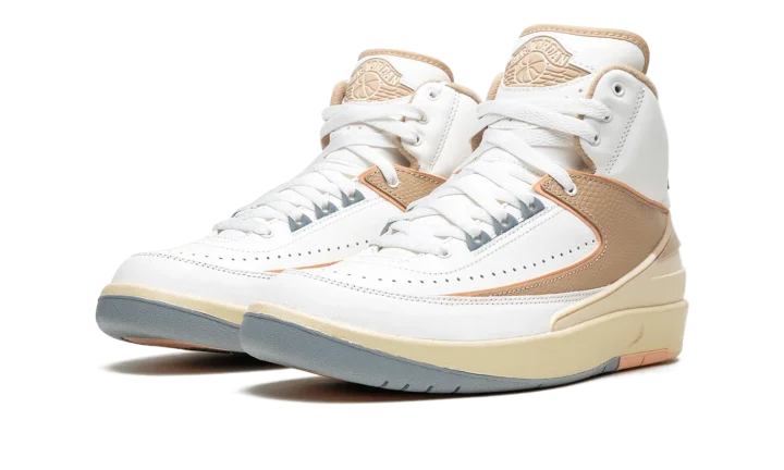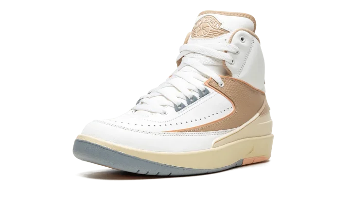 The Women's Air Jordan 2 Craft "Muslin/Sunset Haze" is an alternate, women's-exclusive version of the classic sneaker with a contemporary yet timeless design. The Jordan 2 Craft updates Michael Jordan's second signature shoe with several modern details, including a new raised Muslin-colored, tumbled leather panel on either side of the shoe. The rest of the shoe's upper is designed in light grey leather, save for the cream-colored rubber overlay found on the heel that matches the look of the vintage-aged midsole. A Muslin "Wings" logo appears on the tongue and additional Muslin accenting can be found on the underside of the tongue and along the interior of the collar. Release date: January 26, 2023