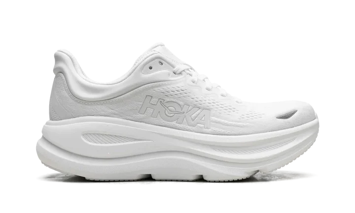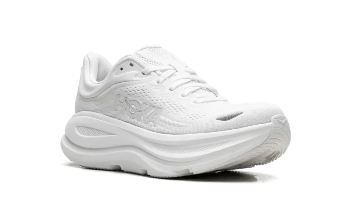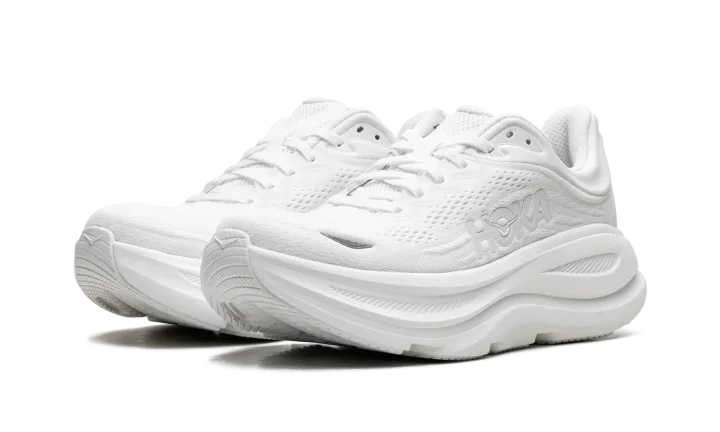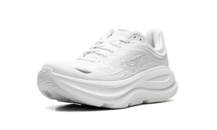 Experience ultimate cushioning in the Women's Hoka One One Bondi 9 "White/White." This road running shoe delivers a smooth, balanced ride with its soft, lightweight foam and extended heel. The breathable mesh upper and internal heel counter ensure a comfortable and supportive fit.