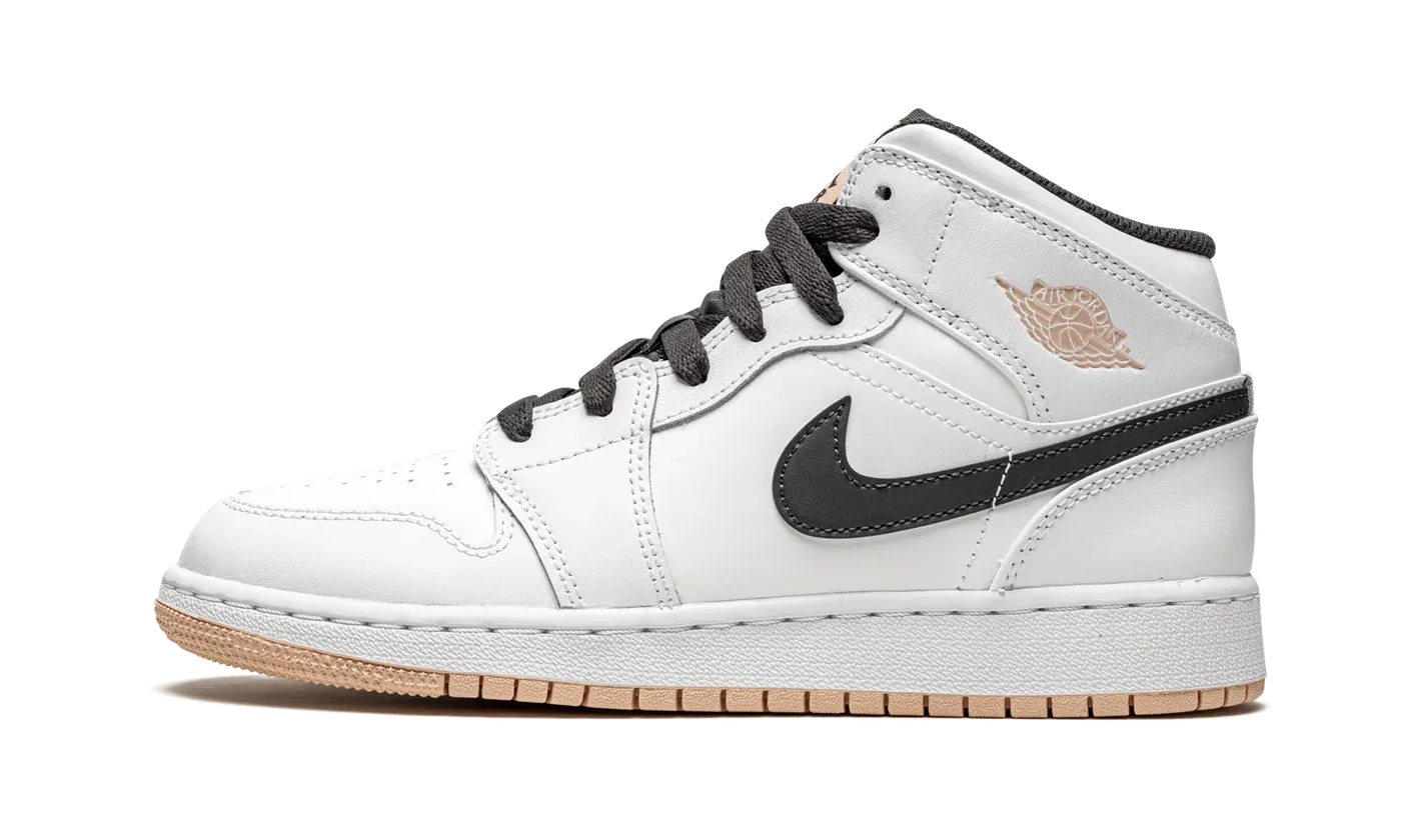The Air Jordan 1 Mid GS "White/Arctic Orange" is a clean and casual youth-sized colorway of Michael Jordan's first signature shoe. Appearing on the increasingly popular mid-top Jordan 1, the "White/Arctic Orange" adopts a mostly minimalist design for an effortlessly stylish look. The black leather Swoosh branding on either side contrasts the white tumbled leather base. An Arctic Orange "Wings" logo appears on the collar overlay. The nylon tongue tag with black Jumpman branding dons the same Arctic Orange hue. Black laces are layered over the black nylon tongue. A white midsole and black outsole round out the look.