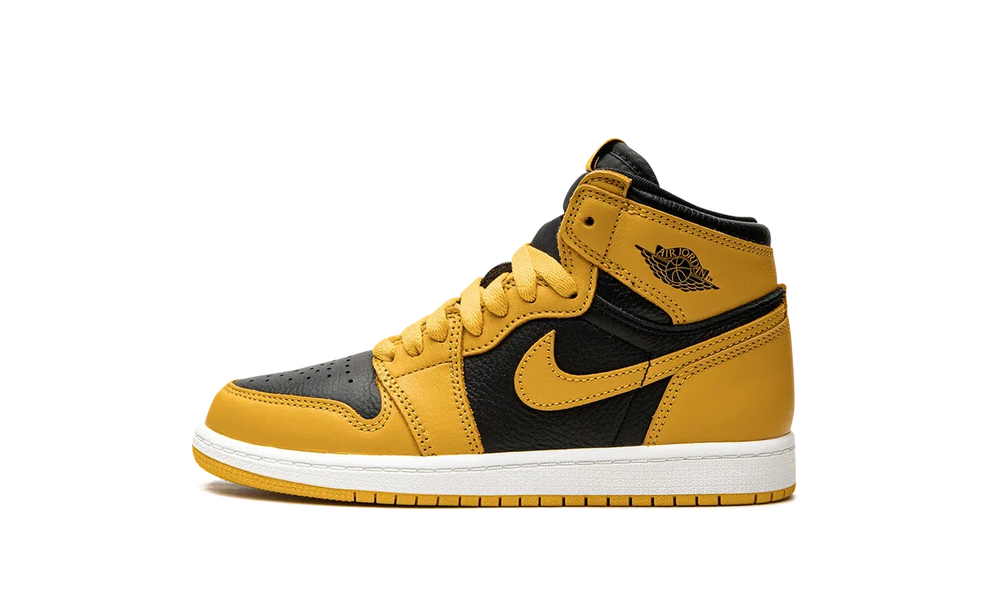 The iconic high-top look gets a bold, scaled-down version with the Air Jordan 1 Retro High OG PS, known as "Pollen." Built for preschool-aged sneaker fans, this shoe features a classic two-tone design, combining a black tumbled leather base with striking Pollen yellow leather overlays and Swooshes. The premium construction and classic silhouette—complete with the Wings logo and Air-cushioned midsole—ensure a supportive fit and a powerful, unmistakable style statement.