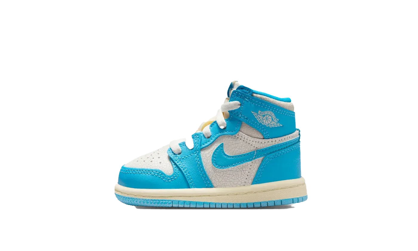 Set up your little one for greatness with the Air Jordan 1 Retro High OG TD 'UNC Reimagined,' the tiny "Vault Find." This Toddler-sized shoe celebrates Michael Jordan's North Carolina roots by applying a popular vintage aesthetic. It features a premium leather upper with cracked leather textures and the classic Dark Powder Blue and Sail colorway. The aged look, combined with durable construction and a solid rubber outsole for traction, introduces your kiddo to basketball history with unbeatable, long-lasting style.