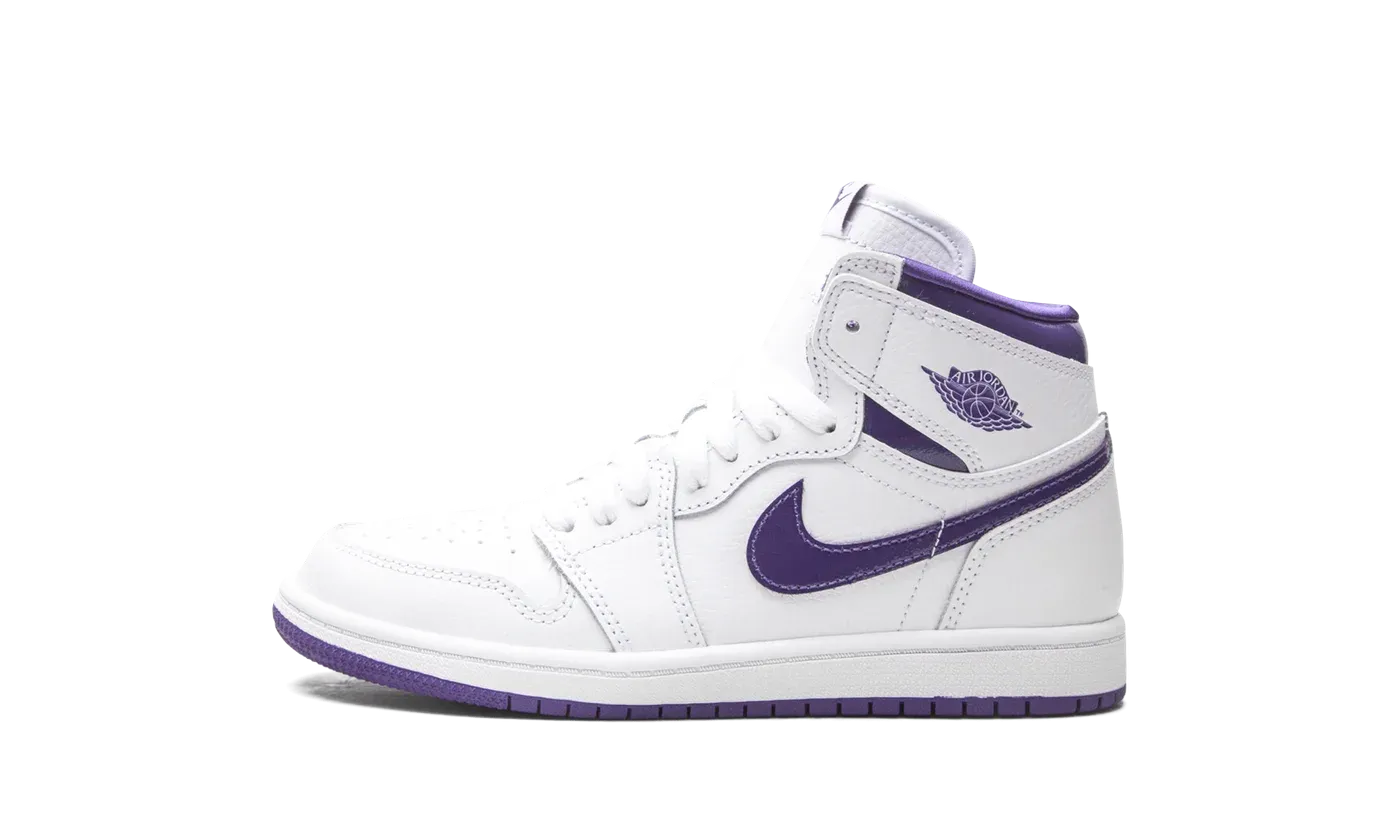 The Air Jordan 1 High PS "Court Purple" is the preschool version of Michael Jordan's first signature shoe inspired by one of the model's original colorways. Released by Jordan Brand in June 2021, the "Court Purple" Air Jordan 1 is a salute to the original "Metallic Purple" edition from 1985 that, rather surprisingly, has never been re-released. This modern interpretation of the look is very close to the design's color block, but there are a few differences. The white tumbled leather upper features contrasting Court Purple leather Swoosh detailing on both sides. A purple "Wings" logo can be found on the white leather overlay beneath the glossy Court Purple leather collar. The major call out between the "Court Purple" and "Metallic Purple" is the difference in material used on the inner lining and tongue. On the "Court Purple," Jordan Brand uses a satin material instead of the standard cloth found on most Jordan 1s. Moreover, the tongue is constructed in leather rather than the nylon style of the original. Release date: June 3, 2021