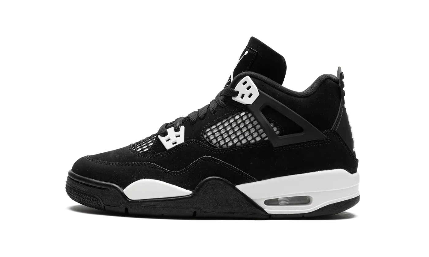 The Air Jordan 4 GS "White Thunder" is a colorway of the retro basketball shoe that draws favorably to a popular style in the Jordan 4's line. The shoe we're referring to is the Jordan 4's "Thunder" colorway from 2006's "Thunder & Lightning" pack that was released in limited quantities exclusively on Jumpman23.com, Jordan Brand's former website. On the "White Thunder," the look mimics the "Thunder" by substituting the latter's yellow accents for white, giving the shoe a two-tone, black-and-white, "Panda" inspired look. The upper features a black synthetic nubuck base with white detailing beneath the mesh on the sides and tongue. White "wings" lace holders contrast the neutral-colored upper. A white Jumpman appears on the heel. The look is brought together by the white painted midsole. A small clear Air unit in the heel puts the finishing touches on the shoe. Release date: August 2024