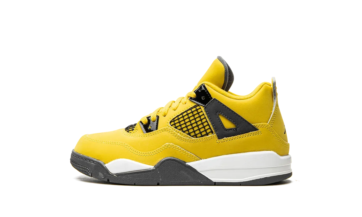 Tour yellow/white/dark blue grey leather Air Jordan 4 Retro "Lightning" sneakers from JORDAN featuring panelled design, signature Jumpman motif, round toe, front lace-up fastening, ankle-length, rubber sole and signature Air cushioning. These styles are supplied by a premium sneaker marketplace. Stocking only the most sought-after footwear, they source and curate some of the most hard to find sneakers from around the world..