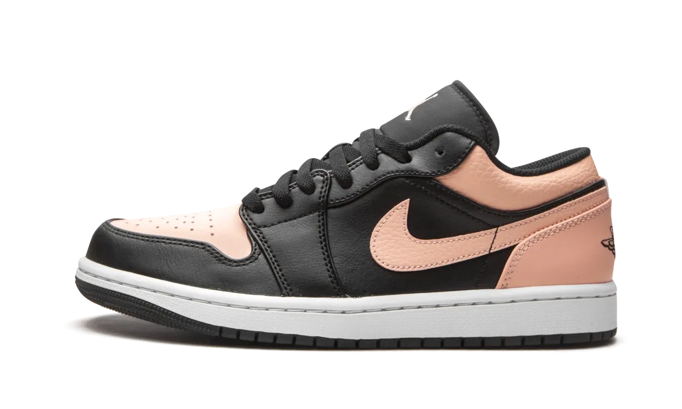 The Air Jordan 1 Low "Crimson Tint" is a stylish look for the low-top version of Michael Jordan's first signature shoe. Executed in a two-tone black and Crimson Tint color block, the "Crimson Tint" is a summer-ready colorway for the iconic silhouette. The forefoot, eyelets, and mid-panel feature a black leather construction. Jordan Brand places a Crimson Tint leather Swoosh on either side and Crimson Tint leather on the perforated toe, collar, and heel. A black embroidered "Wings" logo is stitched onto the back of the shoe and a Crimson Tint Jumpman appears on the black nylon tongue tag. A simple white rubber midsole and contrasting black outsole round out the look.