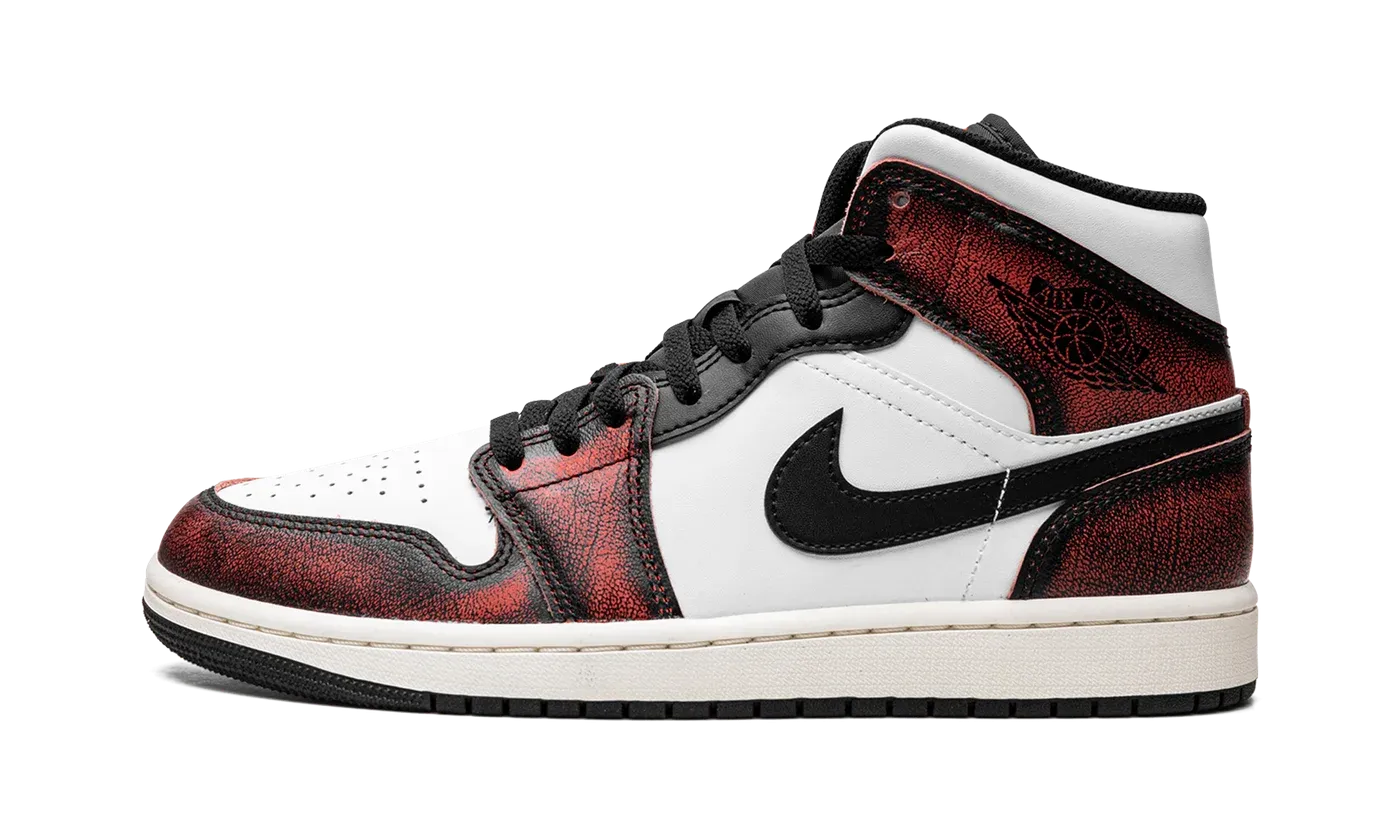 The Air Jordan 1 Mid SE "Wear-Away - Infrared" is a colorway of the mid-top sneaker with wear-away overlays. Very loosely inspired by the Air Jordan 1's original "Chicago" colorway, the "Wear-Away - Infrared" features a similar color block to the iconic shoe, but with a few noticeable modifications. The shoe has a white leather base that's contrasted with Infrared-colored leather overlays with a wear-away black pattern. A black leather Swoosh is found on the sides and a black "Wings" logo appears on the collar. An Infrared Jumpman appears on the tongue.