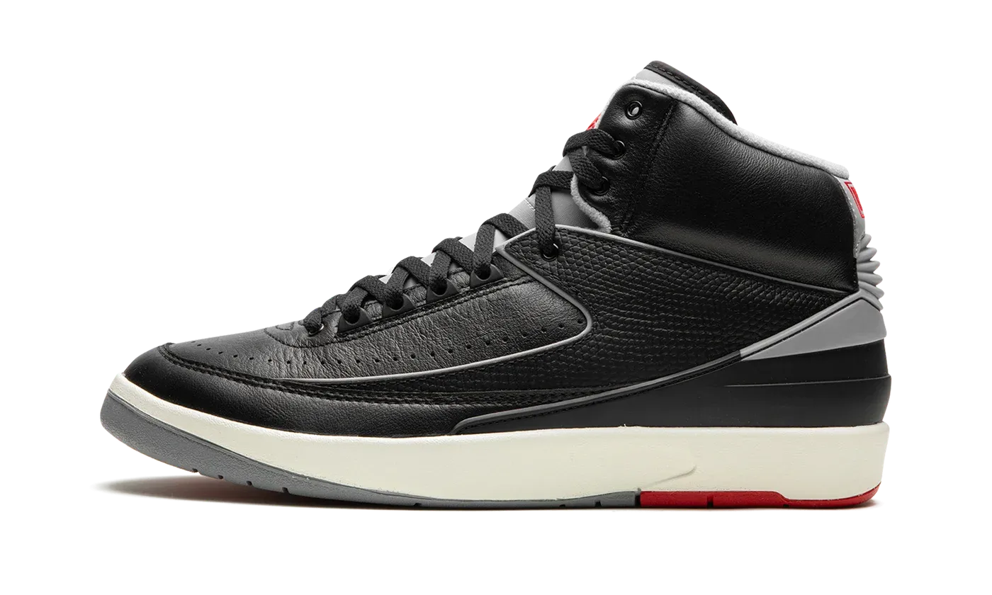 The Air Jordan 2 "Black/Cement" is a colorway of Michael Jordan's second signature shoe inspired by a legendary Air Jordan style. The shoe we're referring to is the Air Jordan 3 "Black Cement," one of the most iconic sneakers of all time. The "Black Cement" Jordan 2 mimics the Jordan 3 of the same nickname's look with black, grey, and red detailing. More specifically, the shoe has a black leather construction with contrasting Cement Grey accents on the heel, tongue, and inner lining. A red "Wings" logo appears on the tongue. Underfoot, the white midsole is paired with a red and grey rubber outsole. Release date: September 23, 2023