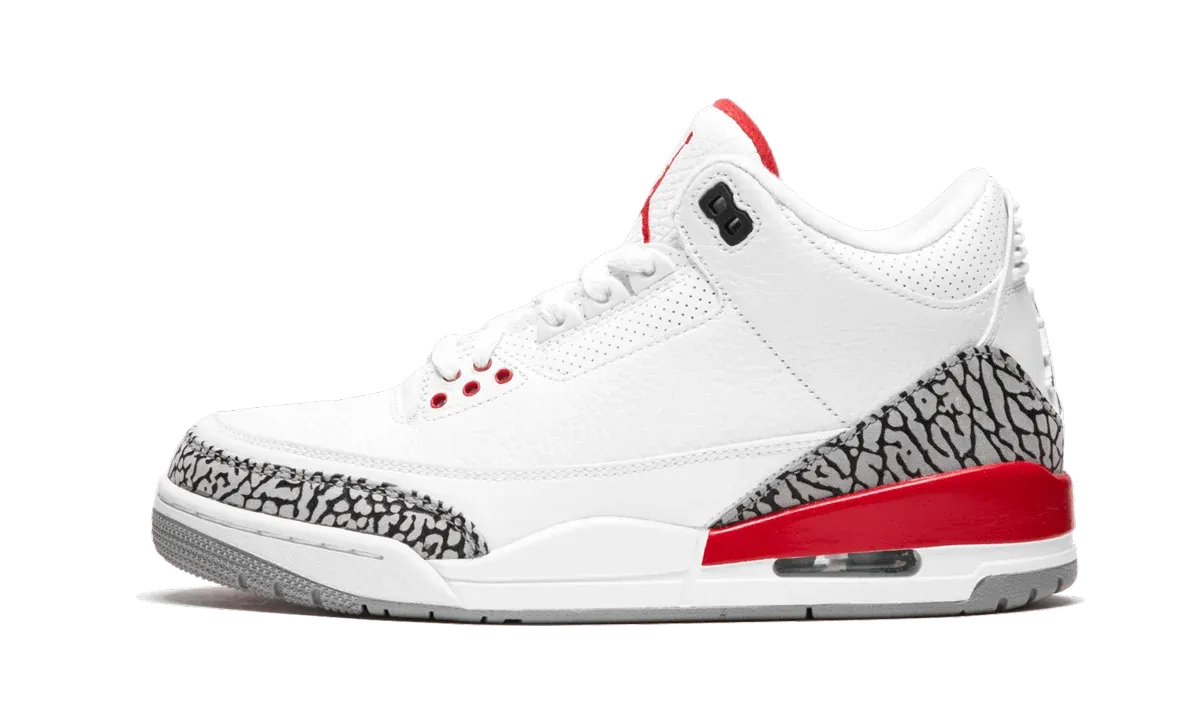 The Air Jordan 3 "Katrina" may not be an original colorway of the legendary model from 1988, but it's still one of the most celebrated. It was first produced in very limited quantities to raise money for Hurricane Katrina relief efforts in 2005. After becoming highly sought after in the following years, the Air Jordan 3 "Katrina" finally received a wider release in 2018, much to the delight of Air Jordan collectors everywhere. The unique Jordan 3 colorway features a white leather upper with Fire Red detailing. Cement Grey accents the signature elephant print paneling. The clean look is ready to become a regular member of your Air Jordan collection.