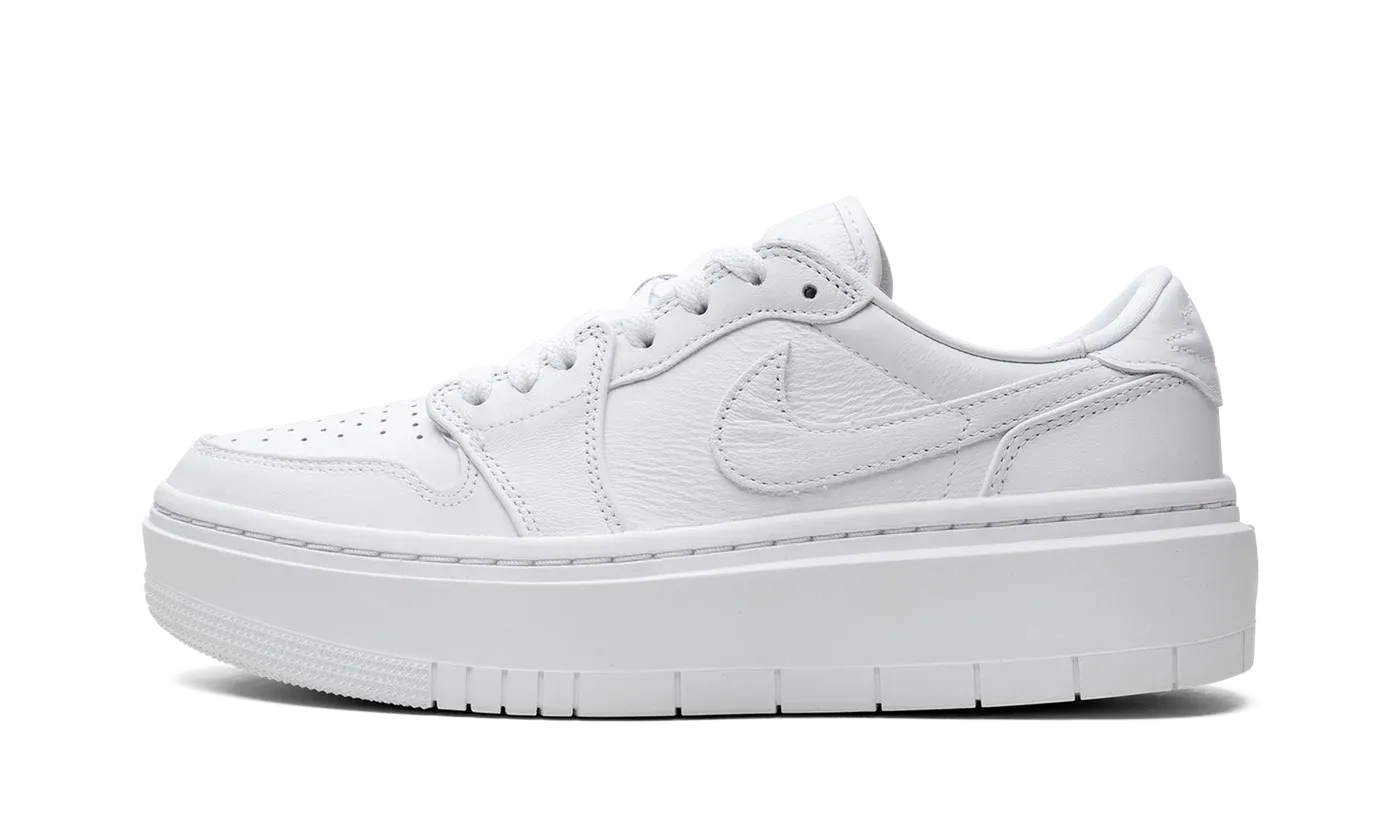 The Women's Air Jordan 1 Low Elevate "Triple White" is the women's-exclusive sneaker with a platform rubber sole in a monochromatic white colorway. The Jordan 1 Low Elevate provides the wearer with a boost in height with an exaggerated rubber sole. As for the rest of the shoe, the upper features a white leather construction that includes white leather overlays and Swoosh branding. A "bubble" "Wings" logo appears on the heel and white laces are layered over the tongue, completing the all-white-everything vibe. Release date: February 21, 2024