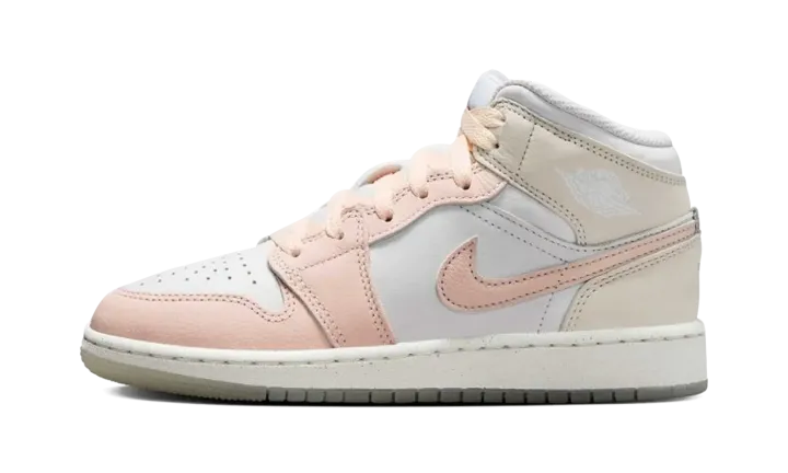 Inject some tropical flair into their rotation with the Jordan 1 Mid GS 'Flamingo' sneaker. Designed with vibrant summer vibes, this special edition AJ1 features a refreshing colorway of Sail, Guava Ice, Sea Glass, and Glacier Blue. Constructed with premium genuine leather, it maintains the iconic look and feel even on cloudy days. With responsive Nike Air cushioning and a durable outsole, this Grade School shoe ensures young feet stay comfortable and stylish whether on the playground or the street.
