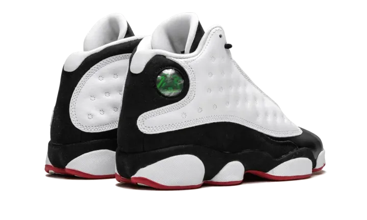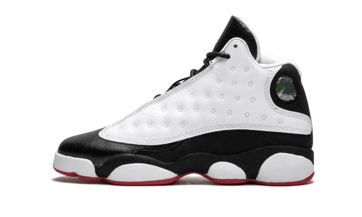 The Air Jordan 13 GS "He Got Game" is the children's-sized version of the 2018 release of the iconic colorway. This original colorway of the Air Jordan 13 in white and black leather with red accents was worn on court by Michael Jordan in 1998, and received the "He Got Game" nickname after appearing in the classic Spike Lee basketball film starring Ray Allen and Denzel Washington. The 2018 retro edition brings the colorway back in perfect detail, featuring a high quality leather upper and the signature holographic logo jewel on the heel. The kids' Air Jordan 13 "He Got Game" is a must-have for an young Air Jordan collector.