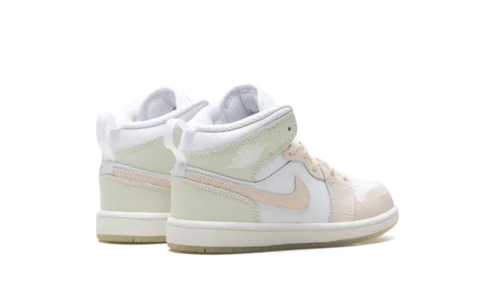 Embrace those vibrant vacation vibes with the Jordan 1 Mid SE PS 'Flamingo' sneaker! This special Preschool edition of the iconic AJ1 brings tropical energy with its Guava Ice and Glacier Blue accents against a crisp Sail leather upper. The durable genuine leather ensures a premium look and feel, while the plush foam cushioning supports all their running and jumping. Give your little one a stylish edge with this colorful twist on a timeless classic.