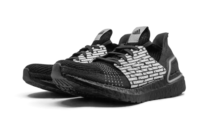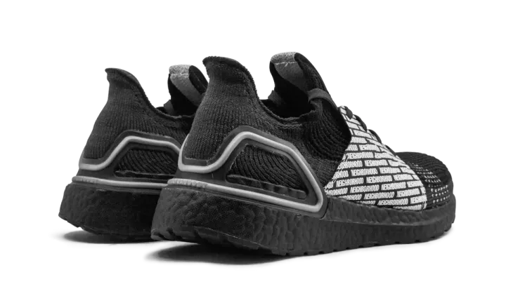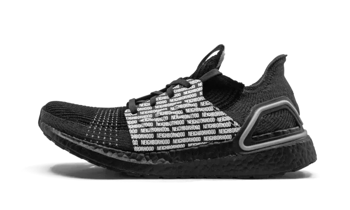 The Neighborhood x adidas Ultra Boost 19 finds longtime collaborator and streetwear stalwart Neighborhood once again adding their unique styling to core adidas footwear. Sticking with its minimalist design ethos, the Japanese streetwear brand opts for an all-black-everything construction of the Ultra Boost 19's Primeknit upper. The midfoot shroud is contrasted by a repeating white Neighborhood branding motif. The only other form of outward branding found on the shoe is the Adidas logo on each tongue. A black Boost-cushioned sole completes the look. The Neighborhood x adidas Ultra Boost 19 was released on November 29, 2019.