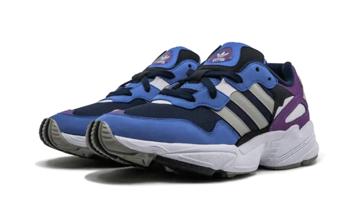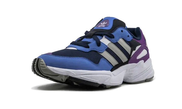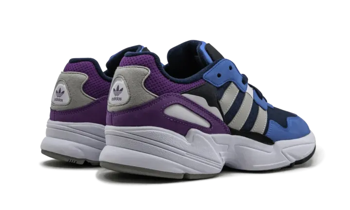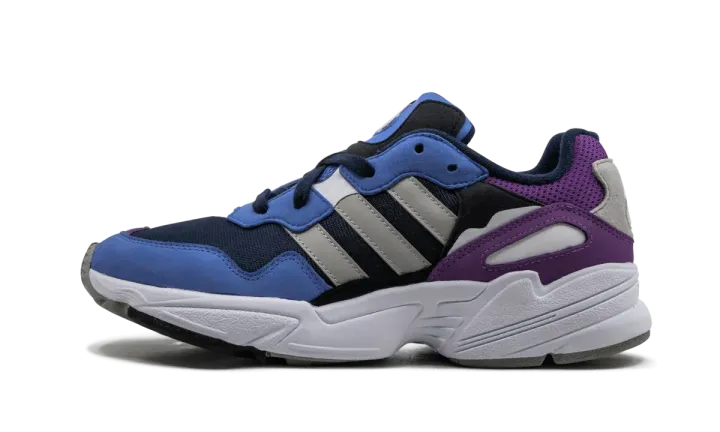 The adidas Originals Yung-96 brings retro styling to a new and improved silhouette. The comfortable shoe starts with a mesh base, then multiple panels and overlays form to create the supportive upper. The dimensional shoe comes with many colors that make up the scheme, including navy blue, purple, grey, and royal blue. The Three Stripes in grey are layered over the mesh material in premium leather, and adidas Trefoil branding proudly stamps the tongue and heel.