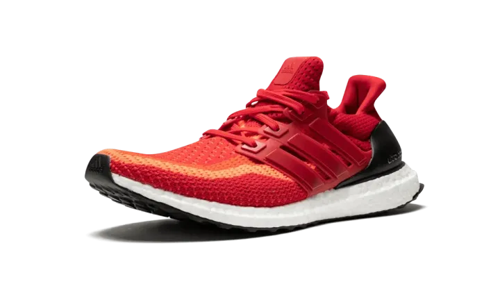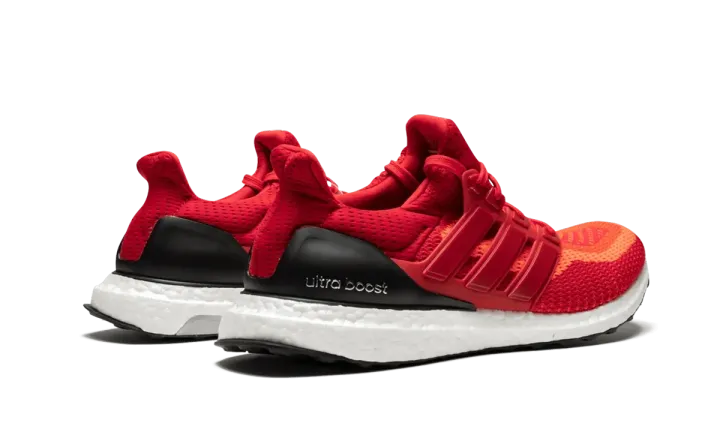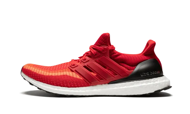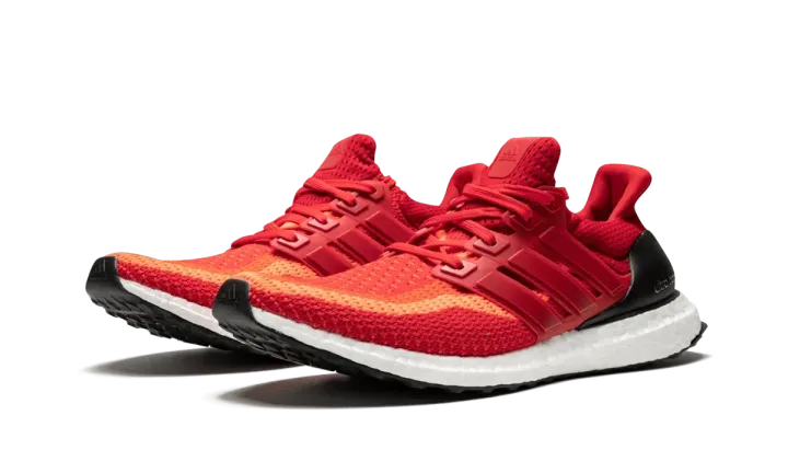 Red Ultra Boost low-top sneakers from adidas featuring round toe, flat rubber sole, front lace-up fastening and branded insole. These styles are supplied by a premium sneaker marketplace. Stocking only the most sought-after footwear, they source and curate some of the most hard to find sneakers from around the world.