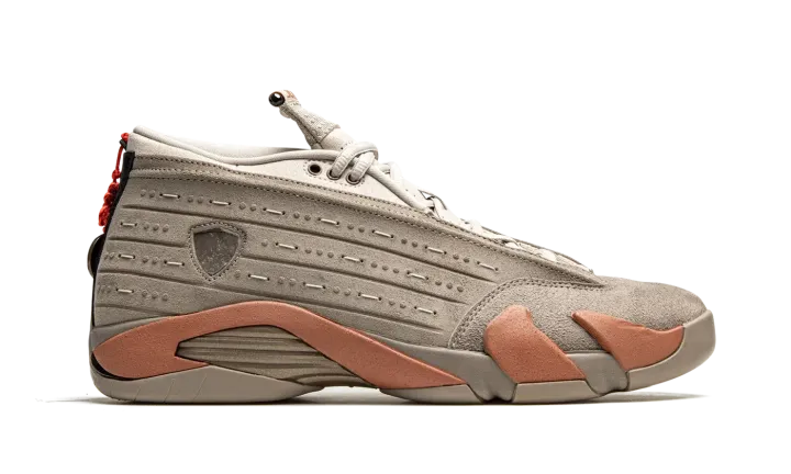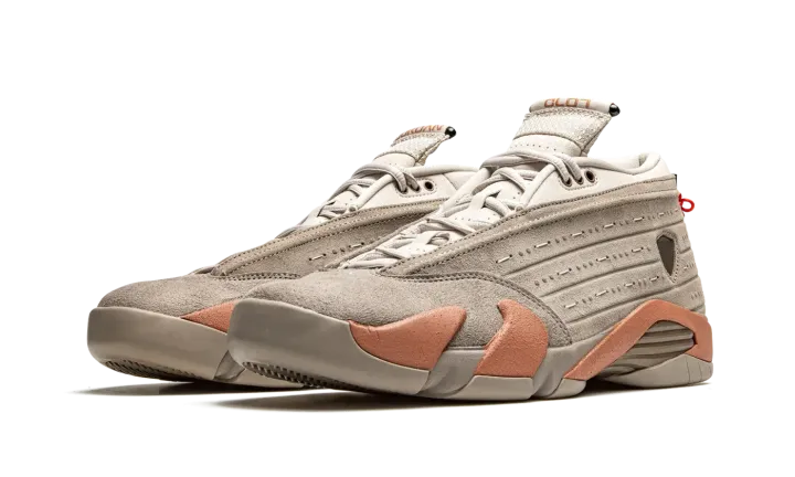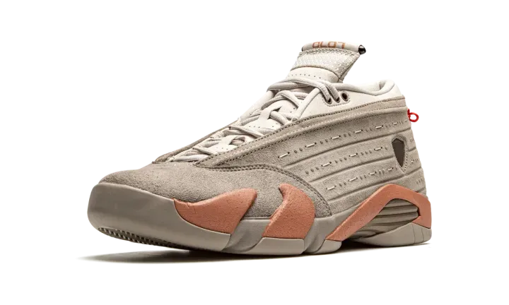 The Clot x Air Jordan 14 Low "Terracotta" is a February 2021 collaboration between Edison Chen's streetwear label and Jordan Brand on Michael Jordan's fourteenth signature shoe. Inspired by the massive reddish clay sculpted figures used in the burial of China's first emperor in 210 B.C., the "Terracotta'' progresses Chen's desire of bridging the gap between Eastern and Western cultures through sneakers. An earthy beige suede overlay can be found on the toe. The rest of the upper is constructed from a slightly lighter shade of matted beige suede for an "ancient" look. "Clot" and "Jordan" branding appear on the top of the left and right tongue, respectively. A metal medallion on the heel symbolizes a warrior on the basketball court. Clot finishes off the look of its "Terracotta" Air Jordan 14 collaboration by adding "clay" inspired detailing to the midsole that gives the shoe a "hardened" look. Release date: February 11, 2021.