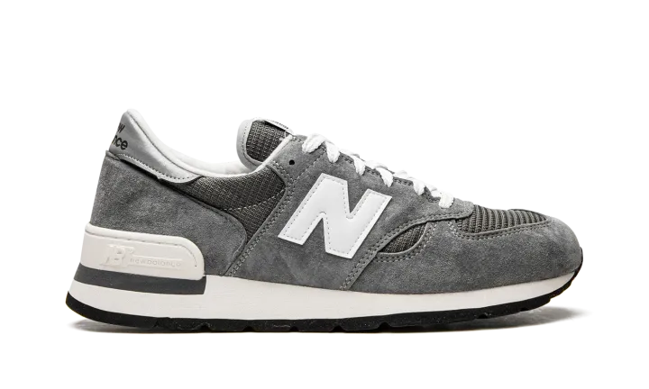 The New Balance 990 Made in USA "Grey" is a neutral colorway of the premium lifestyle shoe by the Boston based sneaker company. New Balance's "Made in USA" line received a boost in popularity when it was announced that Aimé Leon Dore founder and lead designer Teddy Santis would take over the reins of the line beginning in 2021. On the "Grey" colorway, the 990 is updated with a dark grey mesh base with tonal suede overlays throughout. A white leather "N" logo appears on the sides. "New Balance" branding is found on the silver leather heel overlay. Classic "New Balance" detailing is printed on the tongue tag.