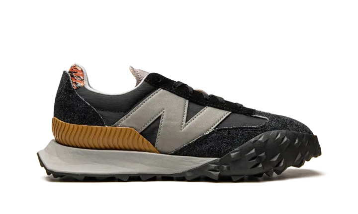 The New Balance XC-72 "Year of the Tiger" is a colorway of the retro-modern lifestyle shoe inspired by 1970s concept cars that honors the traditional holiday. From New Balance's "Lunar New Year" collection from 2022, the XC-72 features a split-color, nylon upper in black and brown. Black suede overlays appear on the toe, forefoot, and eyelets. An oversized leather "N" logo appears on either side of the shoe. The colorway salutes The Year of the Tiger with tiger stripe detailing on the heel. A black "NB" graphic is found on the top of the tongue. Underfoot, a black rubber sole with treading that extends to the front of the toe gives the shoe an aggressive, contemporary-yet-retro appearance.