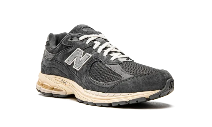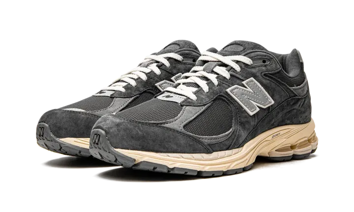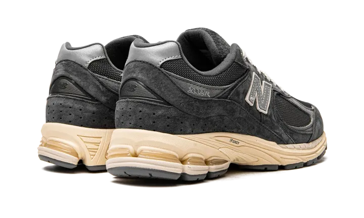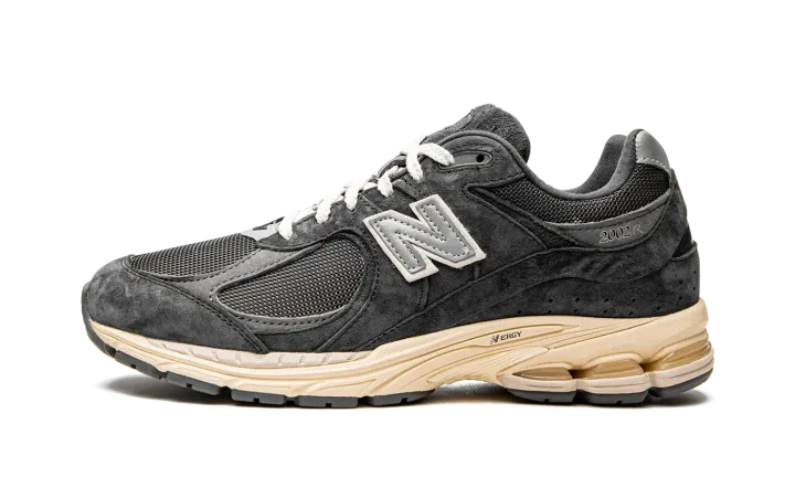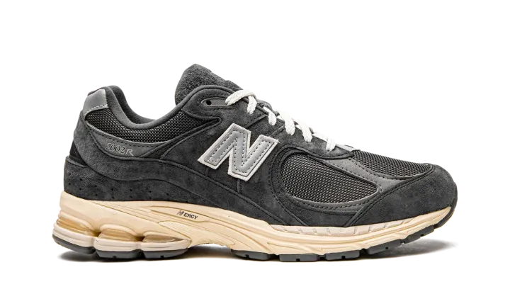 The New Balance 2002R "Phantom" is a neutral based colorway of the casual lifestyle shoe that features modern footwear technology and classic styling. In spite of its 2002R product name, this popular model by New Balance didn't release in 2002, but in 2010 when it debuted in the brand's 1000 collection of performance running shoes. As far as its design, the upper features a Phantom, or black, mesh base with tonal suede overlays. Both the toe and the collar feature grey leather overlays. A silver "N" logo with white trim is found on either side of the shoe. The ABZORB cushioned midsole is painted in a cream hue for a vintage look.