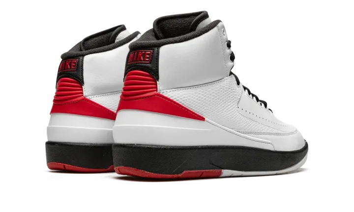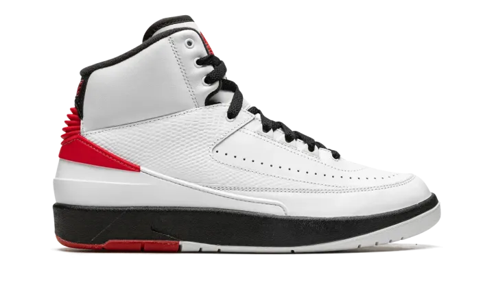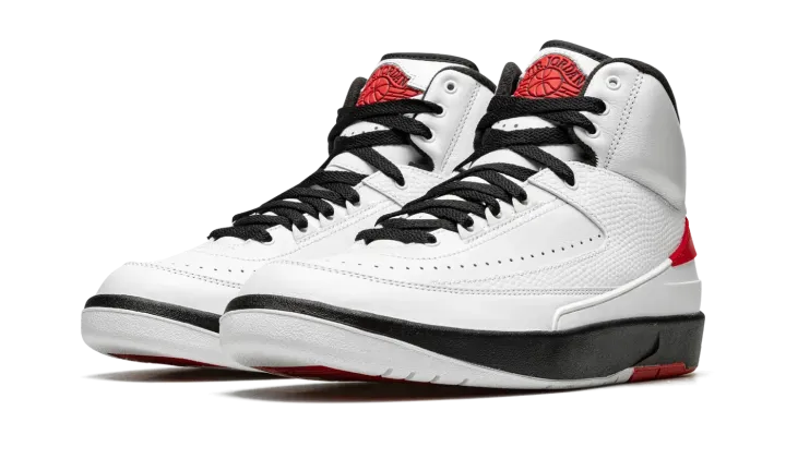 The Air Jordan 2 OG "Chicago 2022" is the modern reissue of the original colorway of Michael Jordan's second signature shoe. Following a handful of special collaborations by Off-White, Union, and many others, the Jordan 2 was officially back in a regular release cycle in late 2021 and throughout 2022. The return of the Jordan 2 "Chicago" is the proverbial "cherry on top" of all of the silhouette's releases. Styled identically from the original Jordan 2 "Chicago" from 1986, the modern version features a white leather construction with perforated detailing on the forefoot. A tonal faux snakeskin overlay is found on the midfoot. Fiery red accents appear on the heel counter below a red "NIKE" logo. The Air Jordan 2's classic "Wings" logo is found on the tongue. The black midsole is paired with a white and red rubber outsole to complete the look of this timeless Jordan 2 colorway. Release date: December 30, 2022