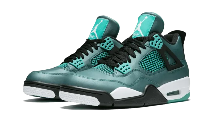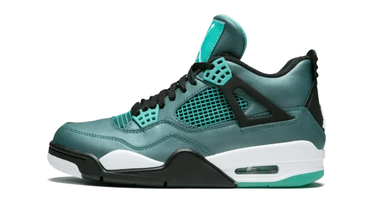 One of the first "Remastered" Air Jordan retro releases, this all-new colorway of the famous Air Jordan 4 from 2015 features a dark teal leather upper with black accents and highlights in bright teal. A release for Jordan Brand's 30th anniversary, the shoes come with special "30" Jumpman logos on each insole.
