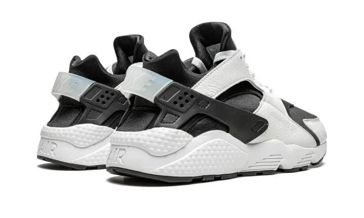 The Nike Air Huarache Run "Orca" is a two-tone, white-and-black colorway of the Tinker Hatfield-designed retro running shoe by Nike. The Air Huarache Run was an integral part of Nike's early '90s performance running shoe collection, an era in which standouts like the Nike Air Max 90, Air Max 93, and Air Max 180, and others, were among the most popular shoes in the world. Here, on the "Orca," white leather overlays contrast the shoe's black neoprene, bootie-like base. The construction provides the wearer with a snug but comfortable fit. A translucent TPU overlay with tonal "Nike" branding highlights the look of the model's signature heel counter. Classic white "Air Huarache" branding appears on the tongue. Release date: June 11, 2021