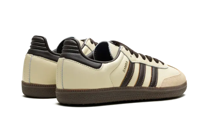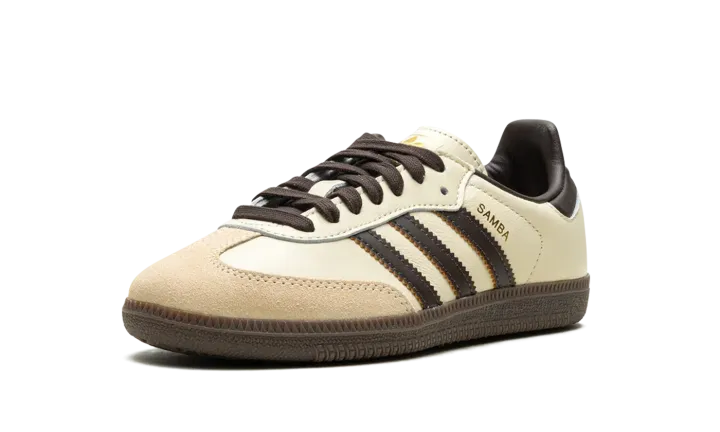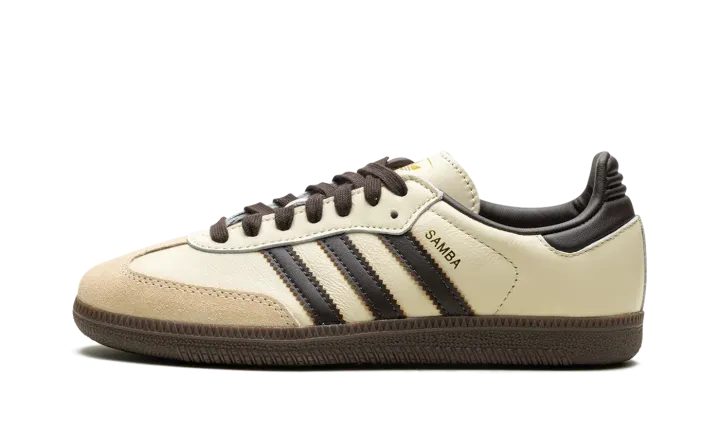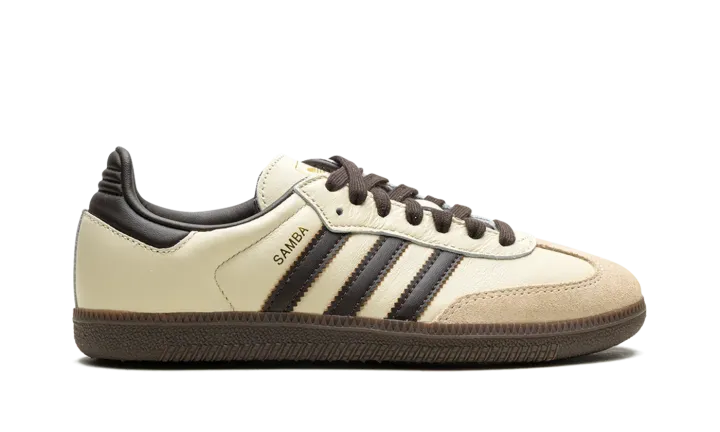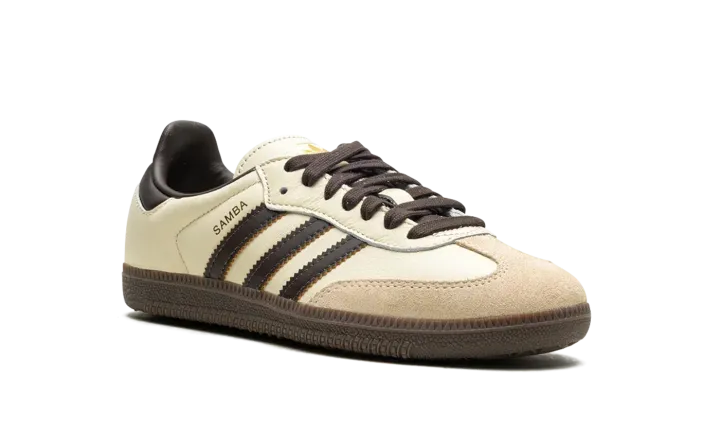 Step into legendary style with the Adidas Samba OG 'Cream White / Dark Brown'. This iconic sneaker is a versatile essential, boasting a premium cream white leather upper complemented by rich dark brown serrated Three Stripes and heel tab. The classic suede T-toe design and durable gum rubber outsole ground the look in timeless sport heritage. Embrace the retro cool and elevate your rotation with a sophisticated, wearable colorway that effortlessly transitions from the pitch to the pavement.